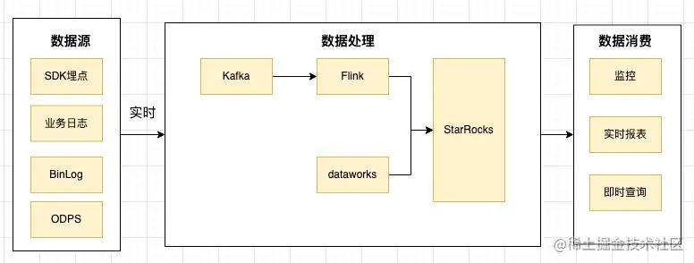 需要实时的数据写入场景,我也沿用了业内流行的解决方案,即数据采集到 Kafka 之后,使用Flink做实时写入到StarRocks。StarRocks提供了非常好用的Flink-connector插件。