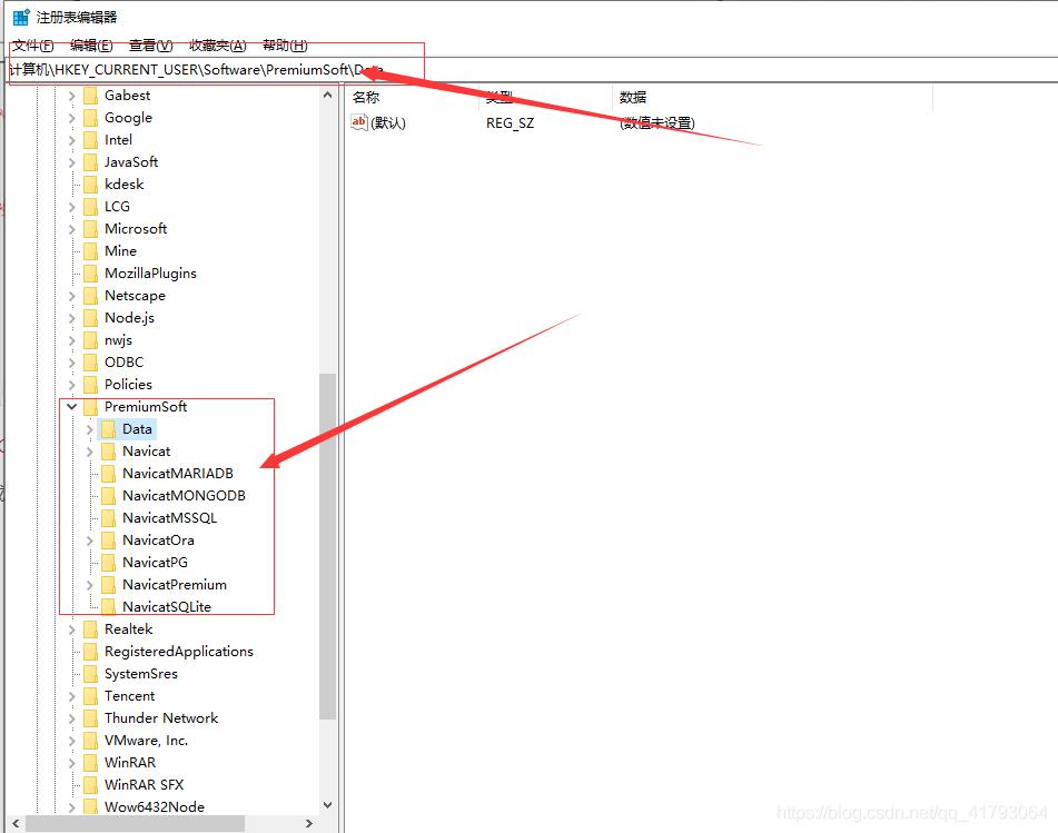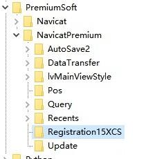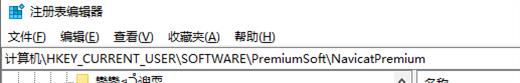 2、在搜索框中输入:HKEY_CURRENT_USER\Software\PremiumSoft\NavicatPremium,将Registration15XCS文件夹 和 Update文件夹删;
