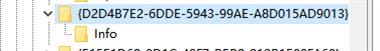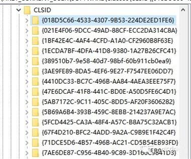 3、接着在搜索框中输入:HKEY_CURRENT_USER\Software\Classes\CLSID,倒叙展开(因为一般都在最后几个文件夹中)每一个文件夹,如果只包含一个名为Info的文件夹,就删除整个文件夹(只有一个带有info的文件夹,找到删了就不用再找了);