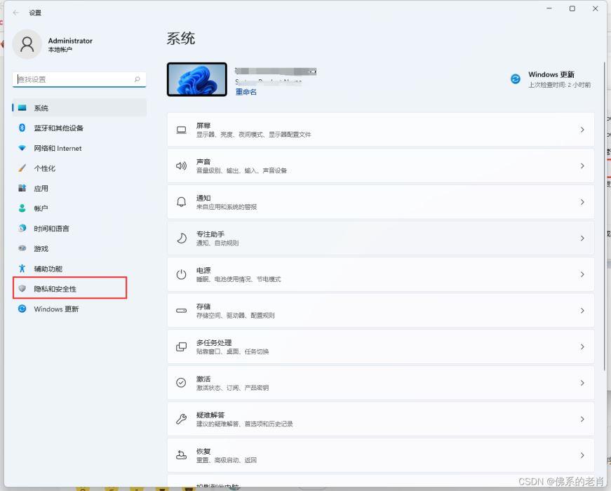 设置中找到隐私和安全性