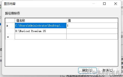将需要排除的路径填入值名称中,点击确定,应用。