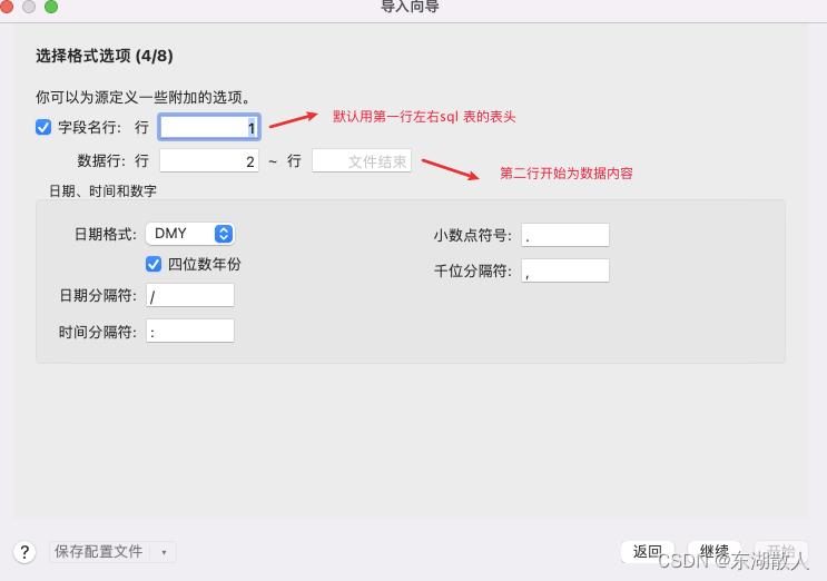 9.默认用第一行作为sql 表的表头,第二行开始作为真实的数据内容,点击继续