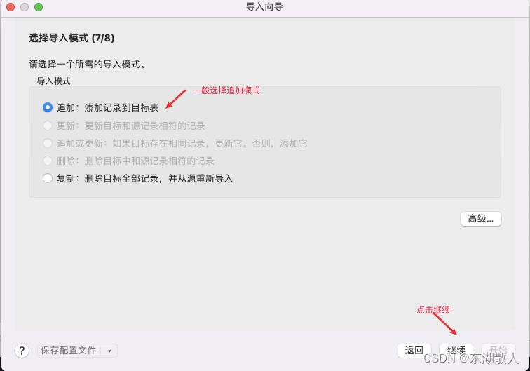 (追加,不会清空掉原有数据,如需要导入多张表的情况下,可以选择追加)