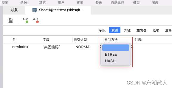 索引方法选择BTREE(b+树 索引),也可以选择hash ,一般的随意数据比较难看出两者的区别,但hash 索引对一些范围查询优化得不是很好