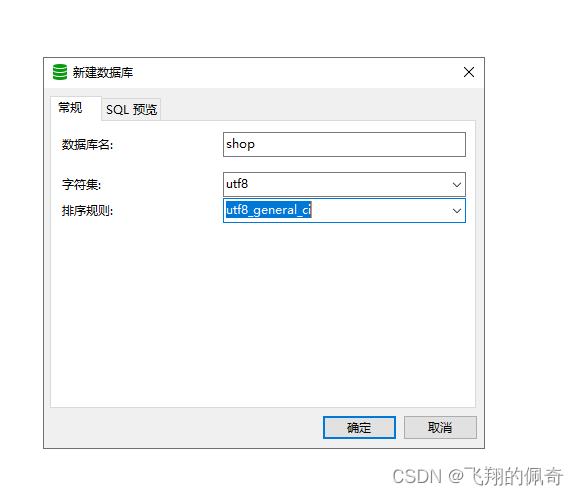 3、打开数据库之后,填写数据库名称,字符集,排序规则