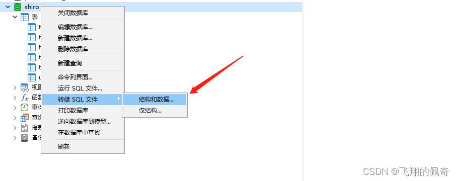 右击数据库,选择 转储SQL文件 ,然后有两个选项: