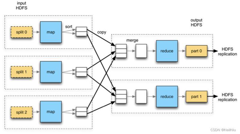 它将计算分为两个阶段,分别为Map和Reduce。对于应用来说,需要想办法将应用拆分为多个map、reduce,以完成一个完整的算法。
