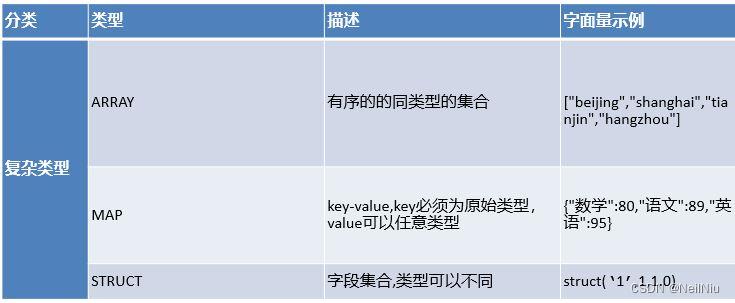 create external table hive_array(name string, work_locations array<string>) row format delimited fields terminated by '\t' collection items terminated by ','; 建表语句: