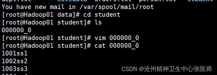 hadoop dfs -get /user/hive/warehouse/hive.db/student/student.txt /root/export/data/student/