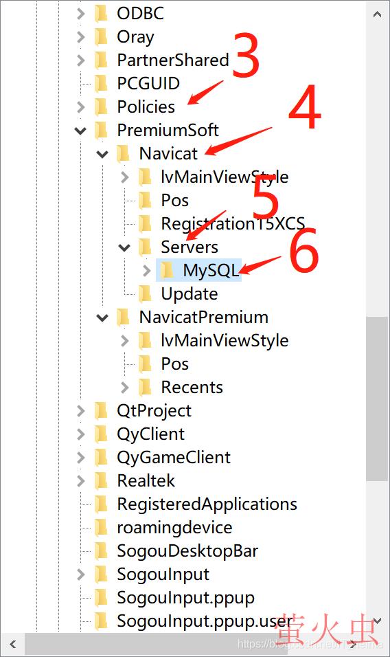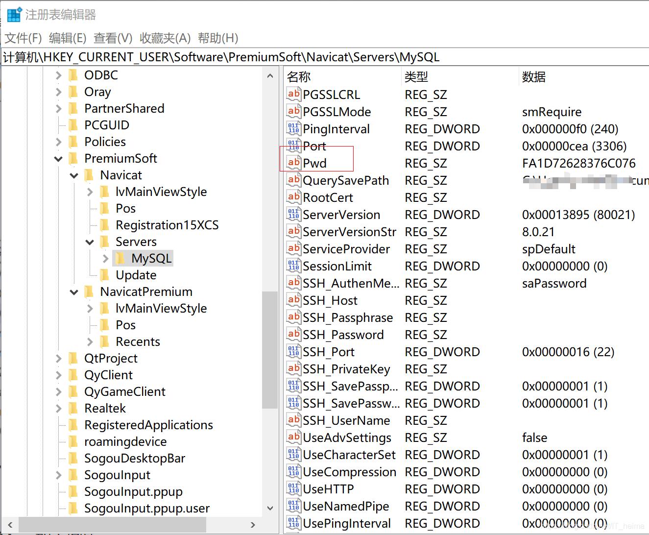计算机\HKEY_CURRENT_USER\SOFTWARE\PremiumSoft\Navicat\Servers\