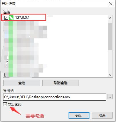 注:Navicat11版本没有勾选导出密码选项,直接导出即可;Navicat12+版本要勾选【导出密码】选项!