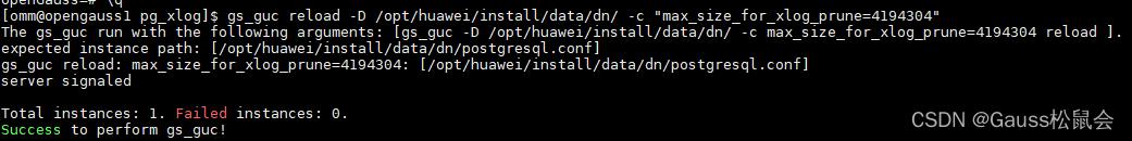 [omm@opengauss1 pg_xlog]$ gs_guc reload -D /opt/huawei/install/data/dn/ -c "max_size_for_xlog_prune=4194304"再去查看空间已经释放。