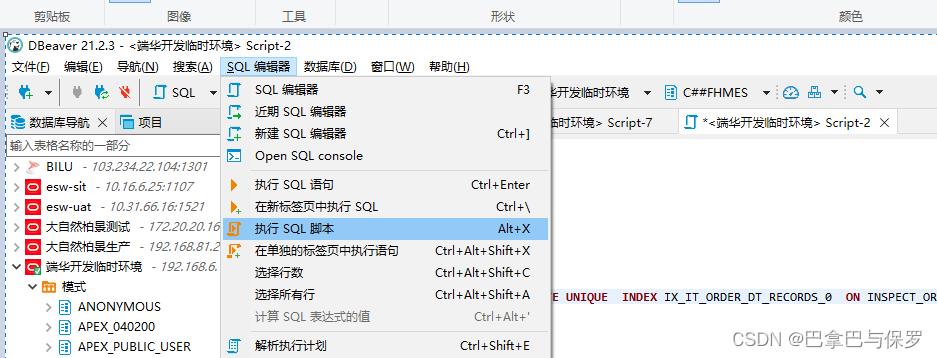 新开个窗口放DDL语句,SQL编辑器 --> 执行SQL脚本