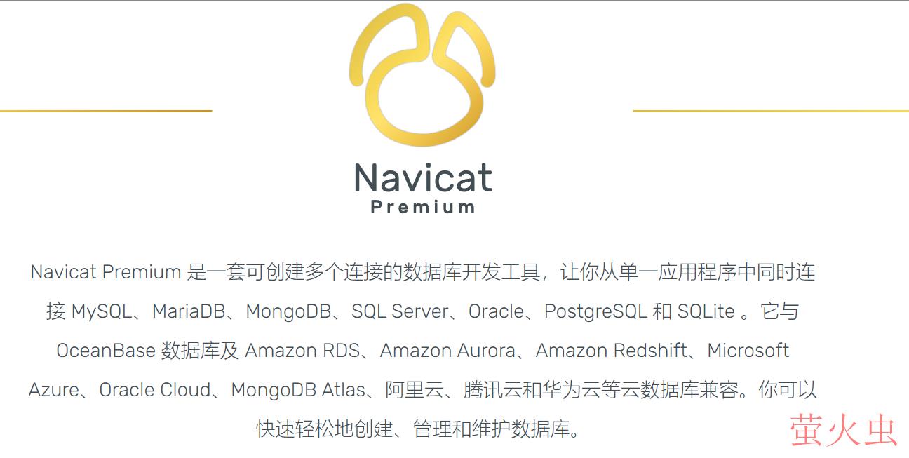 “Navicat”是一套可创建多个连接的数据库管理工具,用以方便管理 MySQL、Oracle、PostgreSQL、SQLite、SQL Server、MariaDB 和 MongoDB 等不同类型的数据库,它与阿里云、腾讯云、华为云、Amazon RDS、Amazon Aurora、Amazon Redshift、Microsoft Azure、Oracle Cloud 和 MongoDB Atlas等云数据库兼容。你可以创建、管理和维护数据库。Navicat 的功能足以满足专业开发人员的所有需求,但是对数据库服务器初学者来说又简单易操作。Navicat 的用户界面 (GUI) 设计良好,让你以安全且简单的方法创建、组织、访问和共享信息。