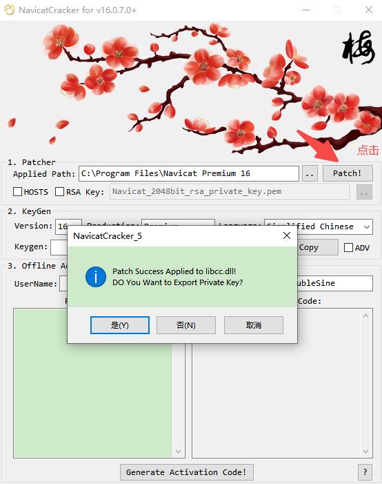 3、将下载的文件NavicatCracker_5.exe移动到Navicat16的安装目录下4、右键选择“以管理员身份运行”,Patcher选择Navicat16安装目录,然后点击Patch按钮