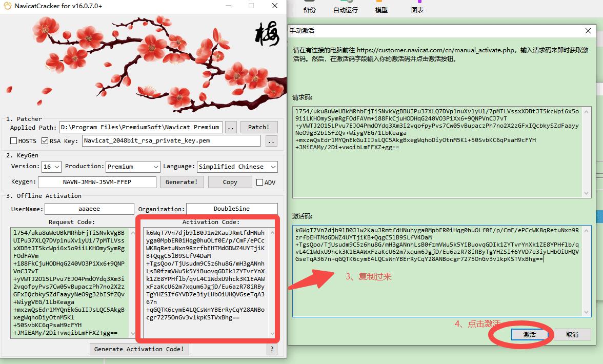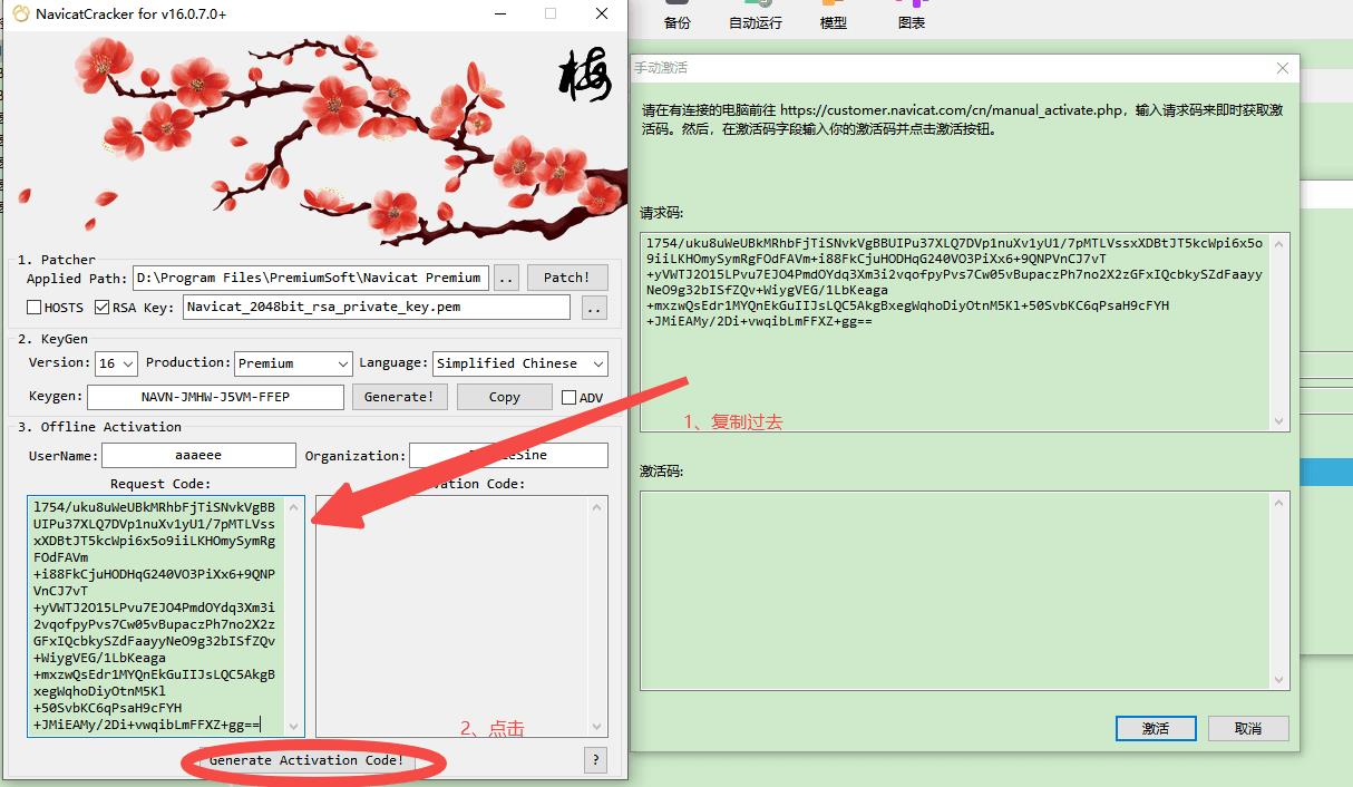 我们把请求码复制过去,然后点击最下面那个按钮“Generate Activation Code”,会生成激活码,在复制回去就行,然后点击激活就行