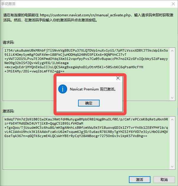 7、点击激活后,弹出如下提示框,这个时候Navicat16激活啦,好好享受最新版的Navicat
