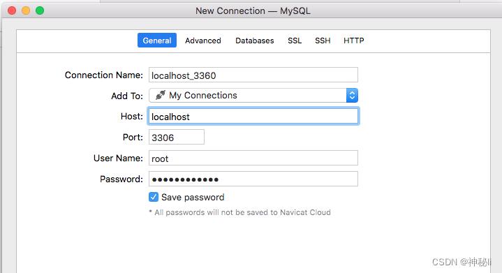 其他的信息都是自动出现的,只需填写连接名和密码后点击保存,就新建好了一个连接。