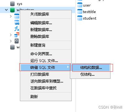 第二步 右击该数据库,选择转储SQL文件再选择结构和数据… 保存到一个你知道的文件夹中,就ok了。