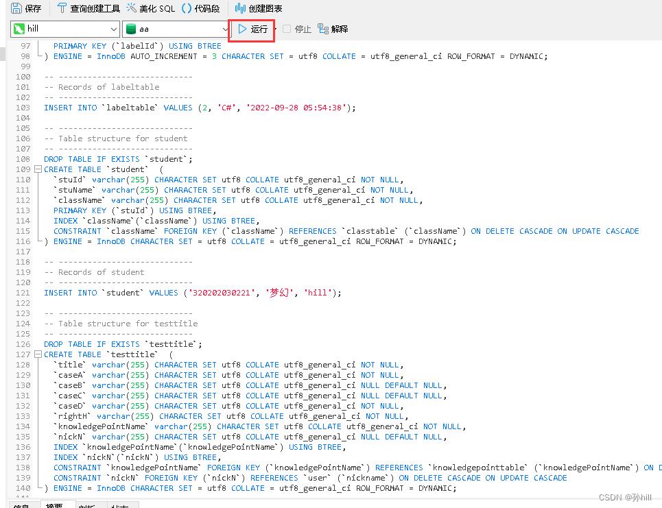 第五步 点击运行,再刷新就可以看到之前创建的表了