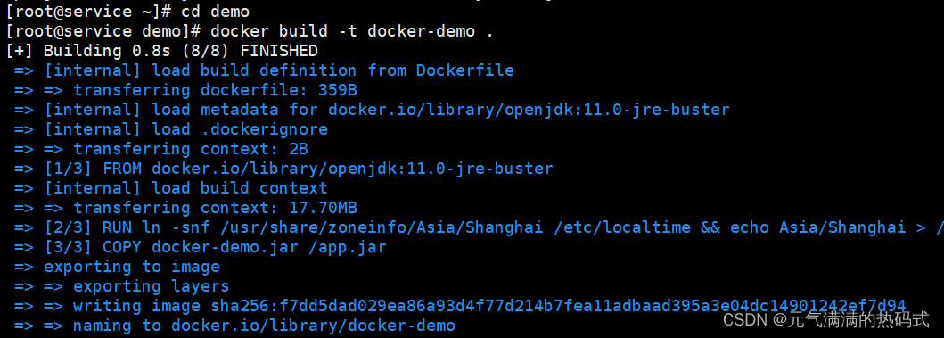 咱们将曾经筹办孬的docker-demo.jar包和Dockerfile拷贝到假造机的/root/demo目次: