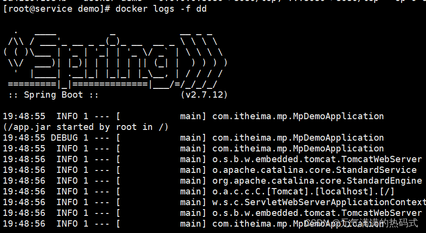 78a000447b49 docker-demo:1.0 0.0.0.0:8080->8080/tcp, :::8090->8090/tcp Up 两 seconds dd