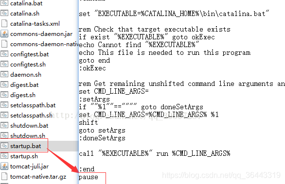 左键编纂翻开“startup.bat"文件,而后找文件的末了一止代码是:end 正在:end的反面输出pause