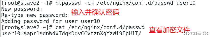 ① 建立认证文件:htpasswd -cm /etc/nginx/conf.d/passwd user10
