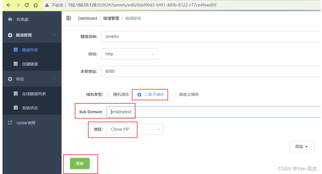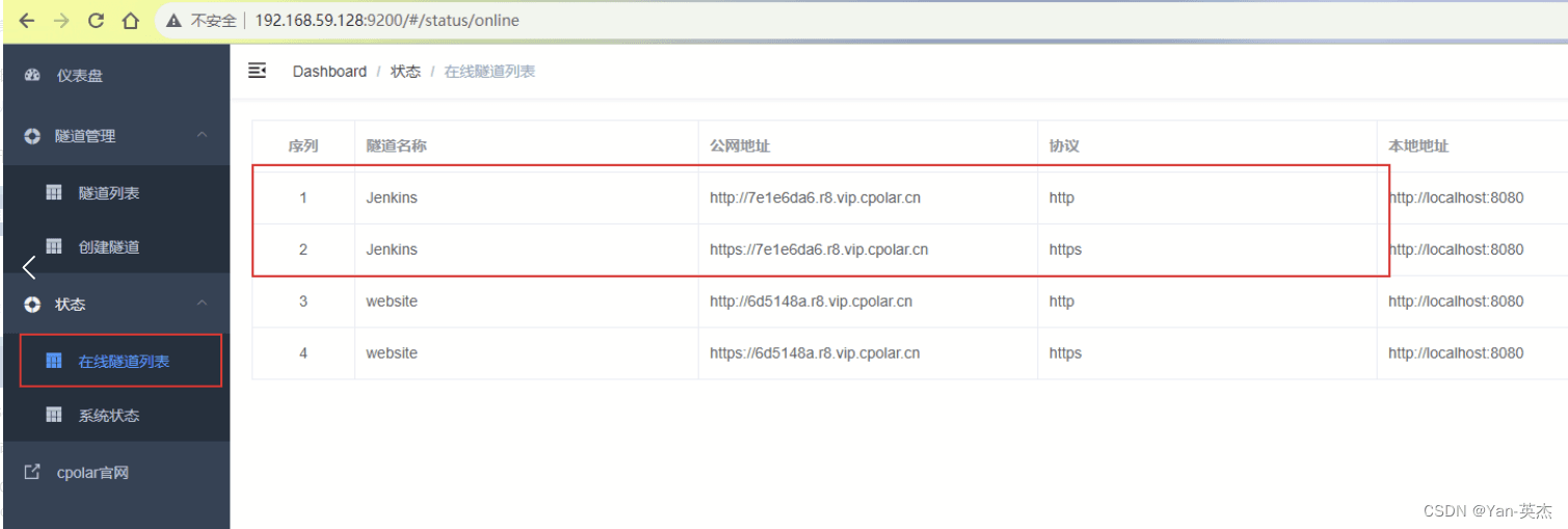 登录cpolar web UI管教界里,点击右边仪表盘的地道料理——地道列表,找到所要陈设的Jenkins地道,点击左侧的编纂