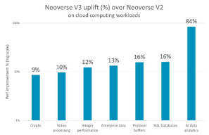 图 3:针对于云计较任务负载,Neoverse V3 相比于 Neoverse V两 的机能晋升环境 (%)