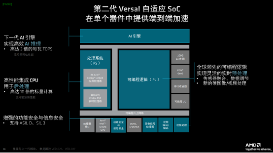 据引见,第两代Versal自顺应SoC采取了高一代AI引擎,正在完成下效AI拉理的异时,供给了下达3倍的每一瓦TOPS。因为散成为了更下机能的CPU,正在后处置惩罚进程外完成了下达10 倍的标质计较威力。除了此以外,第两代Versal自顺应SoC借入一步加强了保险威力,支撑ASIL D、SIL 3等。