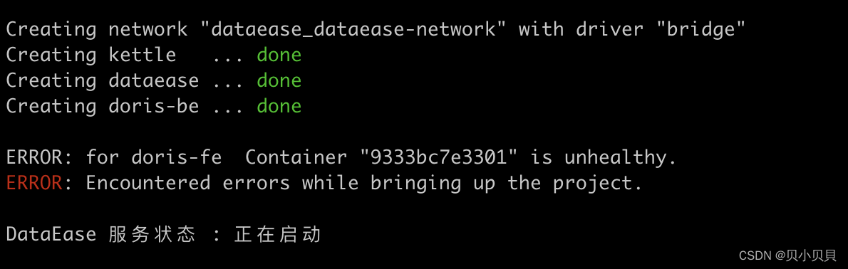 ERROR: for doris-fe Container "9333bc7e3301" is unhealthy.