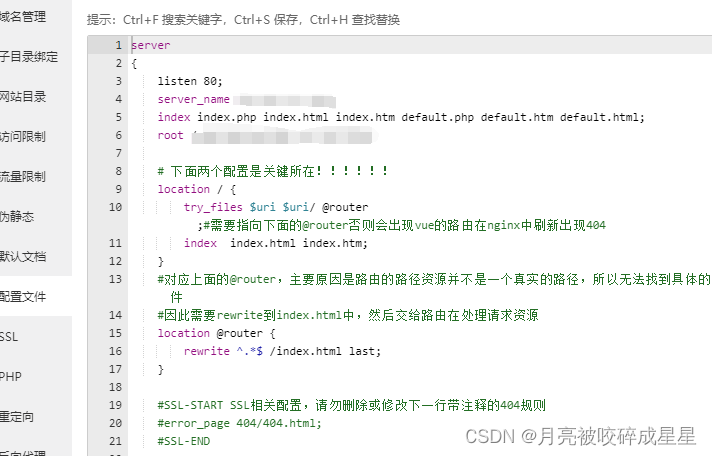 try_files $uri $uri/ @router;#须要指向上面的@router不然会显现vue的路由正在nginx外刷新浮现404