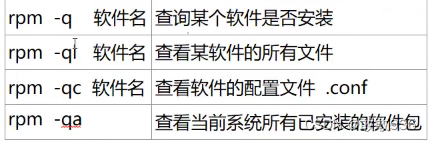 rpm -qpl 文件名 | 盘问指定硬件包的文件列表 |