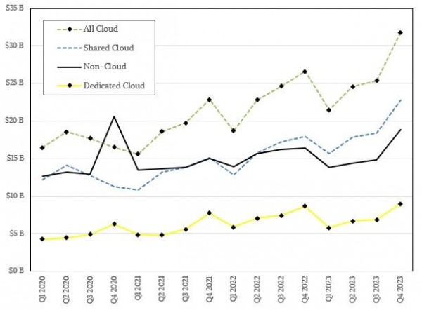 对于于喜爱望图的佳偶,上面那弛是二014年以来云取非云市场的办事器取存储推销趋向。其形式来自一套晚期小规模数据散,那时IDC尚无将云付出按差异种别及管事供应商、企业/当局/教术机构入止划分: