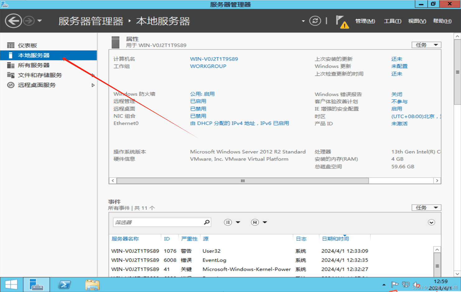 12、点击【当地办事器】