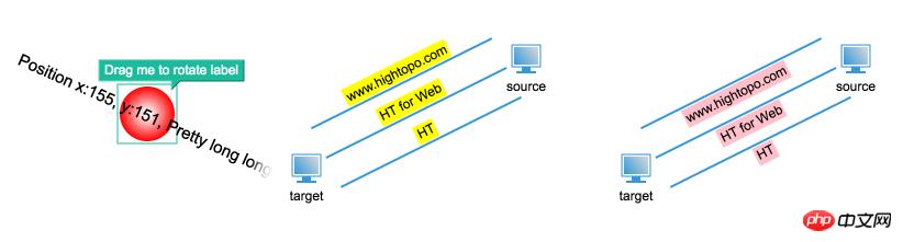 edge.setName('Hello World\nwww.hightopo.com');这里 \n 顾名思义就是换行的意思,当然除了换行外,还可以有垂直布局等等花哨的展示形态,可参考《网络拓扑图上文本的巧妙应用》一文的介绍:
