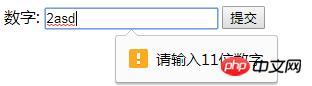 数字: <input type="text" pattern="^\d{11}$" oninvalid="setCustomValidity('请输入11位数字')">