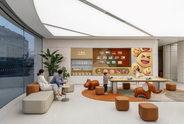 除了产品体验区,店内另设有绿洲咖啡区、儿童活动区、华为学堂等大量休闲空间,为进店消费者打造一个集社交、分享、学习为一体的“城市客厅”。