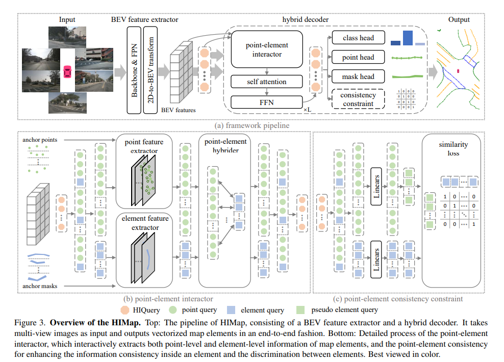 HIMap的整体pipeline如图3(a)所示。输出 HIMap取种种机载传感器数据兼容,比喻来自多视图相机的RGB图象、来自激光雷达的点云或者多模态数据。那面咱们以多视图RGB图象为例来讲亮HIMap。