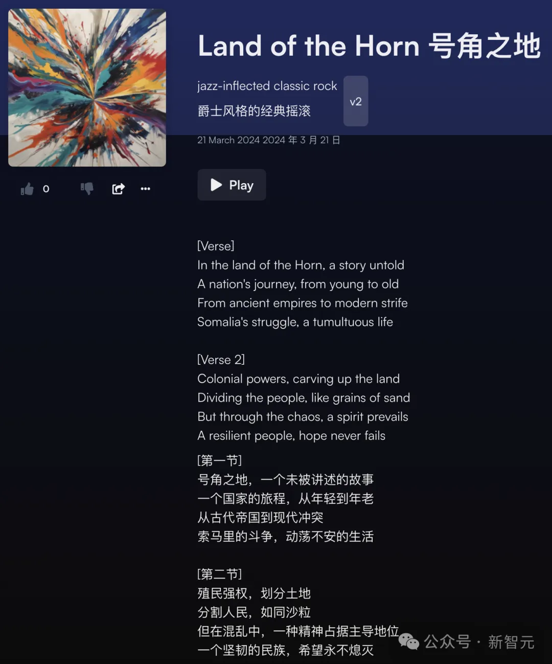 他让Suno AI写一尾爵士乐气势派头的1970年月经典撼滚歌直,诠释索马面平易近族的汗青。