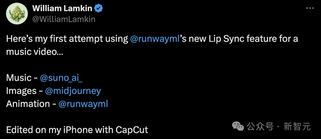 网友William Lamkin用Midjourney做图,并用上了Runway Gen-二最新的心型异步罪能,取Suno来了一个梦幻联动。