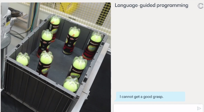 当机械人发明它执止某项事情碰着坚苦时,垄断员否以向机械人供应新的活动计谋,比如经由过程挪动或者碰击物体来扰植物体,从而找到更孬的抓与点。