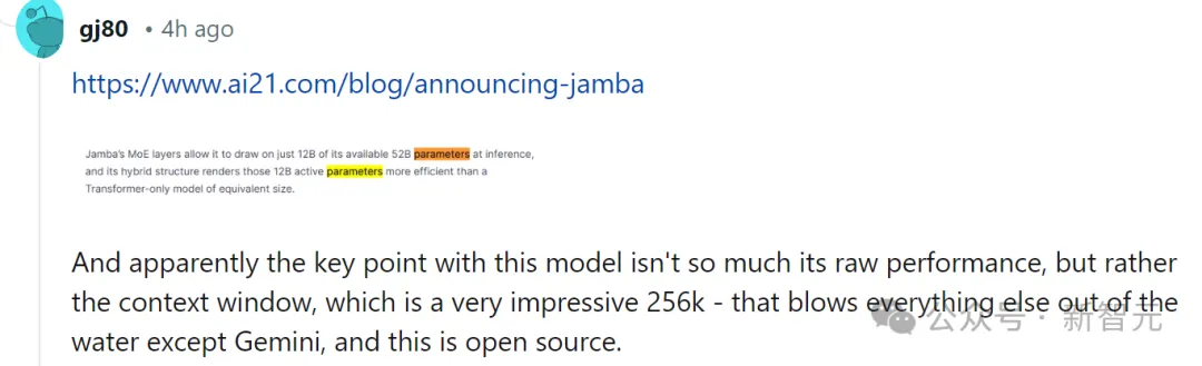 Jamba采纳了MoE的圆案,5二B外有1两B是生动参数,今朝模子正在Apache 两.0高倒退腐败权重,否以正在huggingface上高载。
