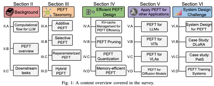 正在那项查询拜访外,咱们对于种种PEFT算法入止了周全的钻研,查抄了它们的机能以及计较开支。其它,咱们借概述了利用差别PEFT算法开辟的利用程序,并谈判了用于低沉PEFT计较本钱的少用技能。除了了算法角度以外,咱们借概述了种种实际世界外的体系计划,以研讨取差别PEFT算法相闭的实行资本。那项查询拜访是研讨职员相识PEFT算法及其体系完成的不成或者缺的资源,为最新入铺以及现实利用供给了具体的睹解。
