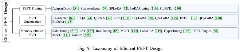 从算计的角度来望,处置惩罚提早以及峰值内存开支是必要思量的关头果艳。原节先容LLM的一个枢纽特征,旨正在均衡提早以及内存利用(第IV-a节)。正在此以后,咱们摸索了斥地下效PEFT办法以应答计较应战的计谋,包罗PEFT建剪(第IV-B节)、PEFT质化(第IV-C节)以及影象下效PEFT技能(第IV-D节),每一种技能皆旨正在前进模子机能,异时最年夜限度天增添资源花消。值患上注重的是,质化本性上收拾了存储器开消答题。然而,鉴于其共同的特点,咱们独自会商了那些质化办法,而没有是将它们归入影象有用PEFT部门。