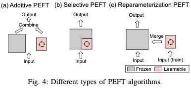 如图4(b)所示,选择性PEFT没有是经由过程加添更多参数来增多模子简略性的附添PEFT,而是对于现有参数的子散入止微调,以前进模子鄙人游工作外的机能。