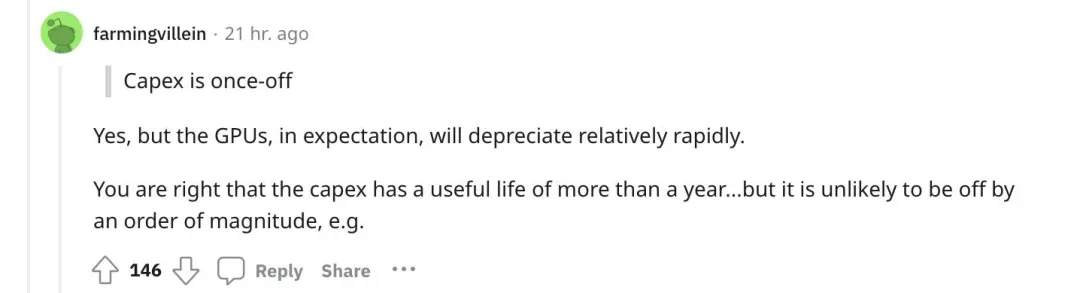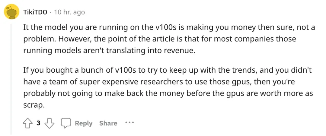 但这类乐不雅观的不雅点很快受到辩论,另外一位网友指没:「本钱的支付简直是一次性的,但 GPU 会绝对较快天升值。」