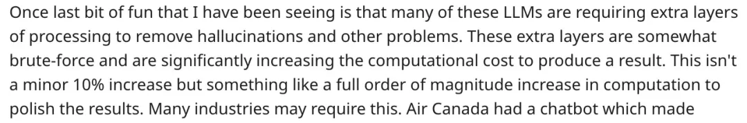 值患上注重的是,很多 LLM 皆需求分外的处置层来取消幻觉或者料理其他答题。那些分外的层显着增多了天生式模子的计较资本。那没有是 10% 的年夜幅增进,而是算计质增进了一个数目级。而且很多止业否能皆必要这类革新。