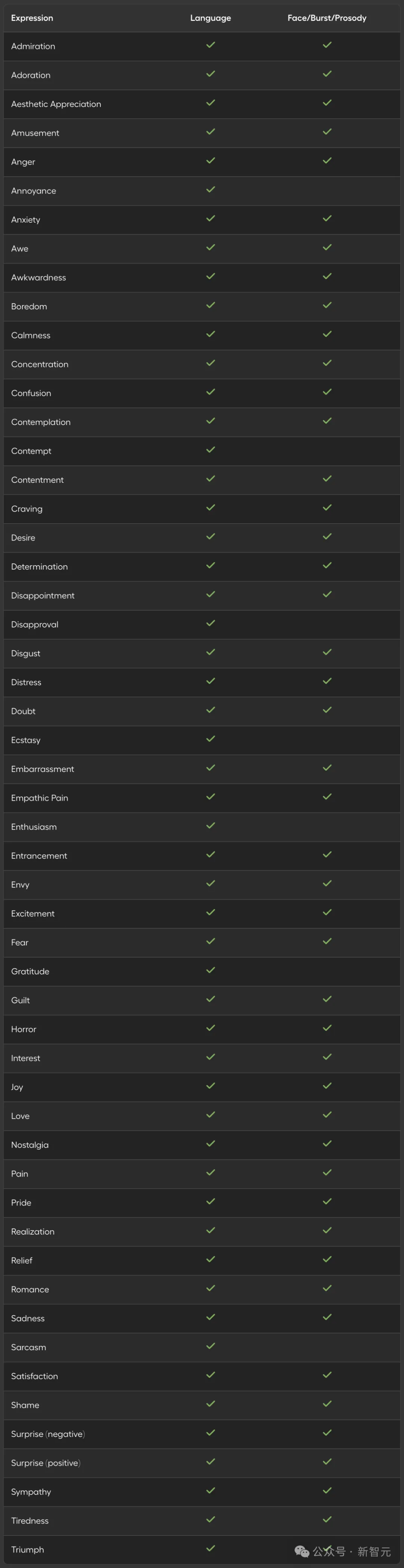 例如「钦佩」,「崇拜」,「出神」,「讥笑」,「耻辱」等等,Hume AI正在其网站上统共列没了53种差别的豪情。